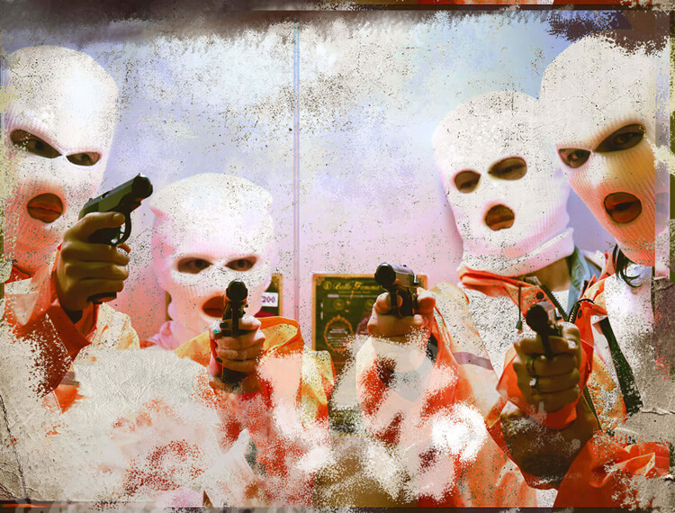 夜の街へとすべり出す、水色のフォード・サンダーバード。カーステレオから流れるソウルナンバーをBGMに交わされるのは、「お前、びびって逃げんじゃねーぞ」と物騒な会話。互いに素性を知らない一夜限り結成された強盗団が向かうのは、さびれたラブホテル。片手にピストル、頭に目出し帽、ハートにバイオレンスで、ヤクザ組織の資金洗浄現場を“たたく”のだ。仕事は大成功、大金を手にそれぞれの人生へと戻っていく。──はずだった。ヤクザ組織、警察、強盗団、家族、政治家、金の匂いに群がるクセ者たち。もはや作戦なんて通用しない。クズ同士の潰し合いが始まる。最後に笑うのは誰だ!