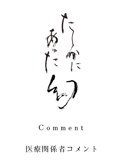問題意識を、改善の必要性を感じながらも、当事者には時間や人員の不足により解決のための行動が難しい。当事者ではない立場の人が、問題意識を共有しないと解決に向けて進んでいけないのだと思います。この映画を通して問いを開いてくだり、医療従事者にとって非常にありがたいと感じました。