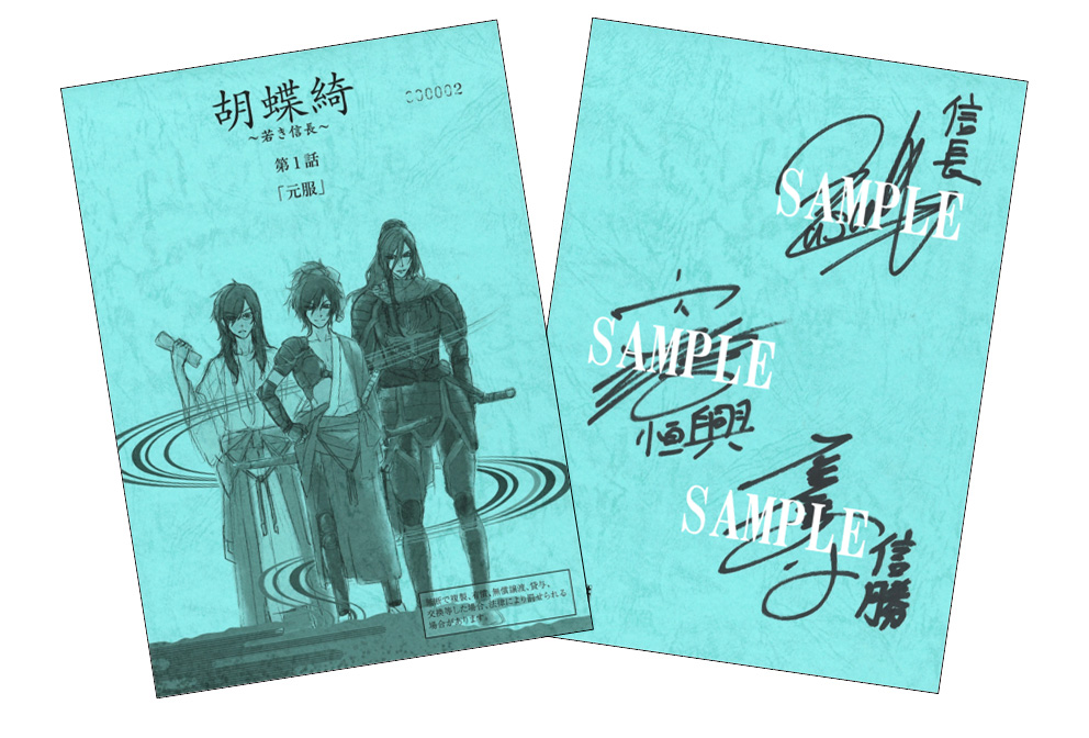 2019年10月2日(水)発売のBlu-ray&DVD「胡蝶綺 ~若き信長~」第一巻を全国のアニメイトにてご購入いただいたお客様を対象に、キャスト直筆サイン入り台本プレゼントキャンペーンの実施が決定しました!