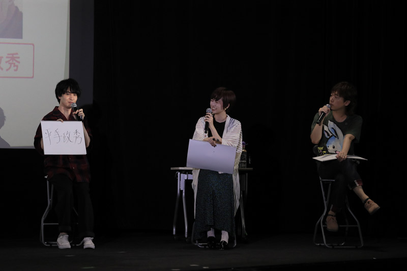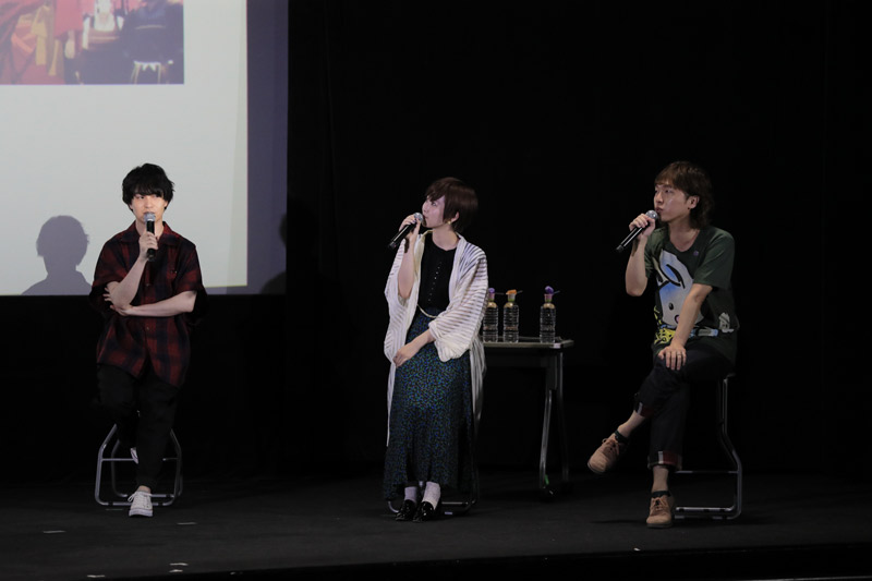 第一話~第三話本編の上映終了後、本作のプロデューサー米森Pが司会進行を務め、それぞれの挨拶の後、トークショーがスタート致しました。