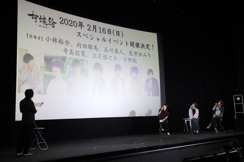 続く告知コーナーでは突然のスペシャル告知!2020年2月16日(日)のスペシャルイベントが発表!!観客席から割れんばかりの拍手が鳴りました。Blu-ray&DVDの発売情報も発表され、告知コーナーは終了致しました。