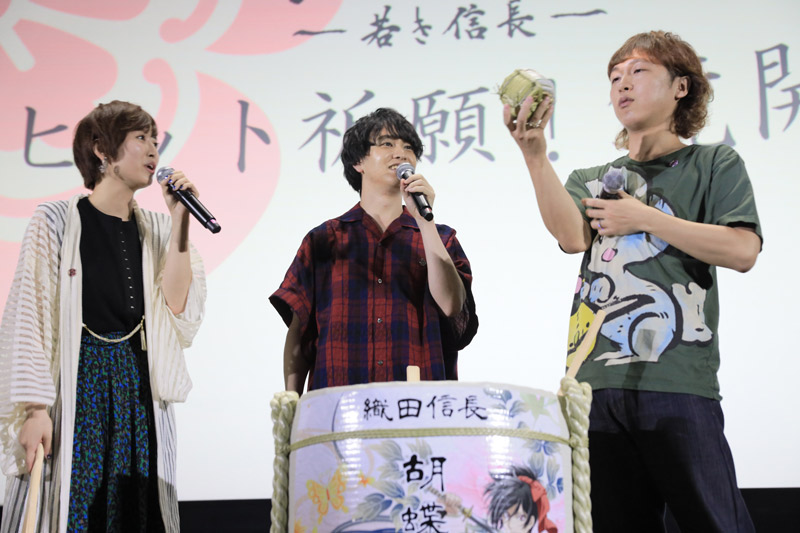 7月8日(月)からのTV放送開始に先駆けて、TVアニメ第一話から第三話の上映のほか、織田信長役の小林裕介さん、帰蝶役の花守ゆみりさん、沢彦宗恩役の立花慎之介さん3名のキャストによるトークショーが行われました。